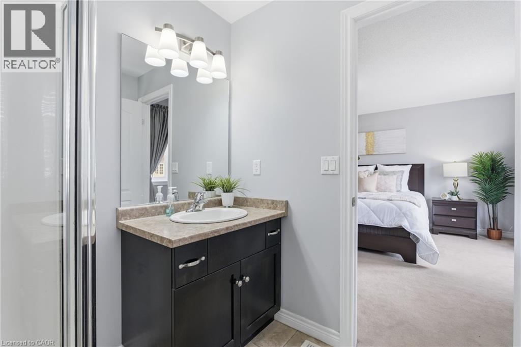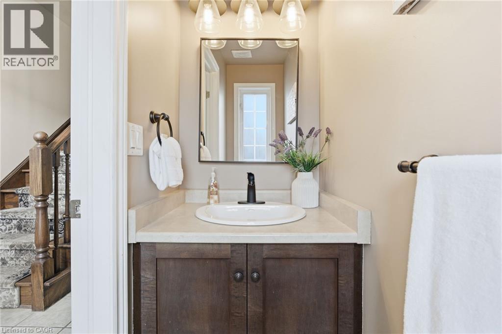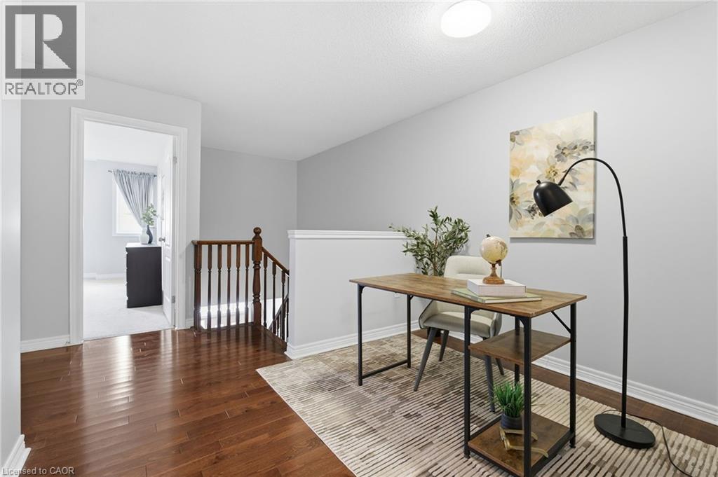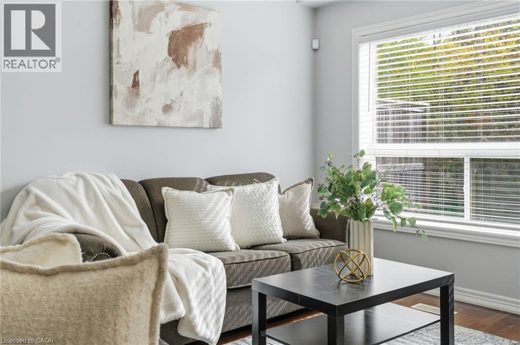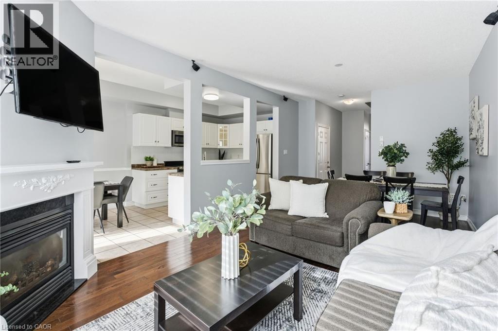 Designed for busy lifestyles, this 3-bedroom, 4-bath townhome offers the perfect balance of comfort and convenience. The main floor is open and bright, featuring 9-foot ceilings, large windows, and a gas fireplace for cozy winter nights. Step out to your private deck overlooking greenspace — with no backyard neighbours and minimal upkeep. Upstairs, enjoy bedroom-level laundry, a flexible loft area, and a spacious primary suite with an ensuite bathroom and walk in closet. The finished basement with a 2-piece bath is ideal for a huge rec room, guest space, or kids’ play zone. Low maintenance fees cover snow removal and lawn care, so weekends are yours to enjoy. Walkable to shops, restaurants, and essentials, plus quick highway connections, this home fits seamlessly into a busy schedule. Move-in ready and built for real life — this is low maintenance Ancaster living. RSA (id:4069)